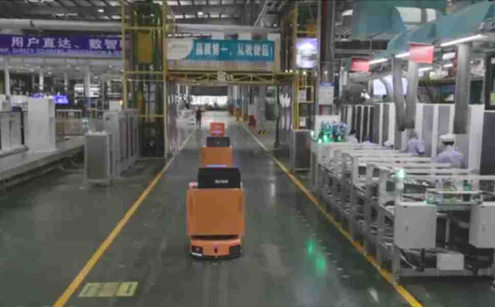 为车载冰箱物流配送打造的智能解决方案,,包含产中物流通过潜伏举升AMR搬运至线边,,,产后成品物流智能仓储,,,流程包含产中物流智能齐套入库,,线边安灯叫料AMR智能配送至线边,,,成品入库、、出库,,,,通过无人堆高车机器人,,,,智能仓储管理替代人工作业管理,,实现更高存储、、更高效率、、更具柔性化的解决方案。。