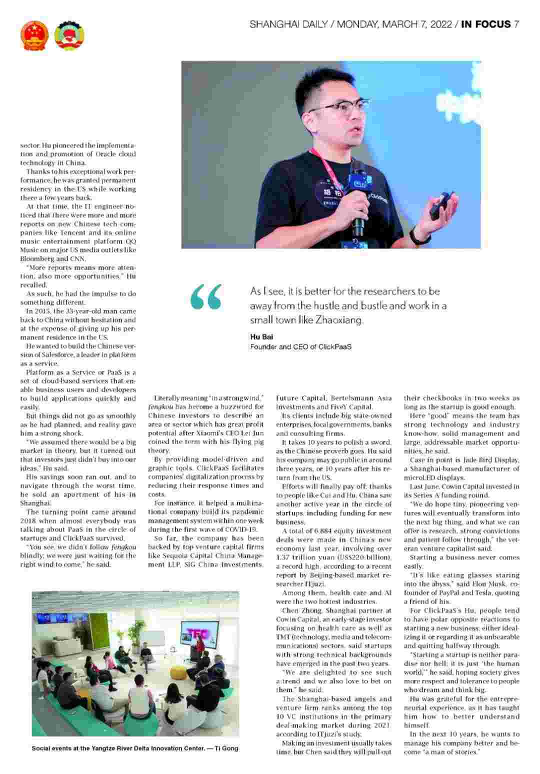 近日,,,,,,,NO钱包创始人、、、、、、、、、CEO胡柏接受了《上海日报》采访,,,,,,,,,,,关于自己当初为何选择创立NO钱包,,,,,,,,,,又为何将公司落户于上海青浦,,,,分享了其背后的故 事。。。。。。。。。