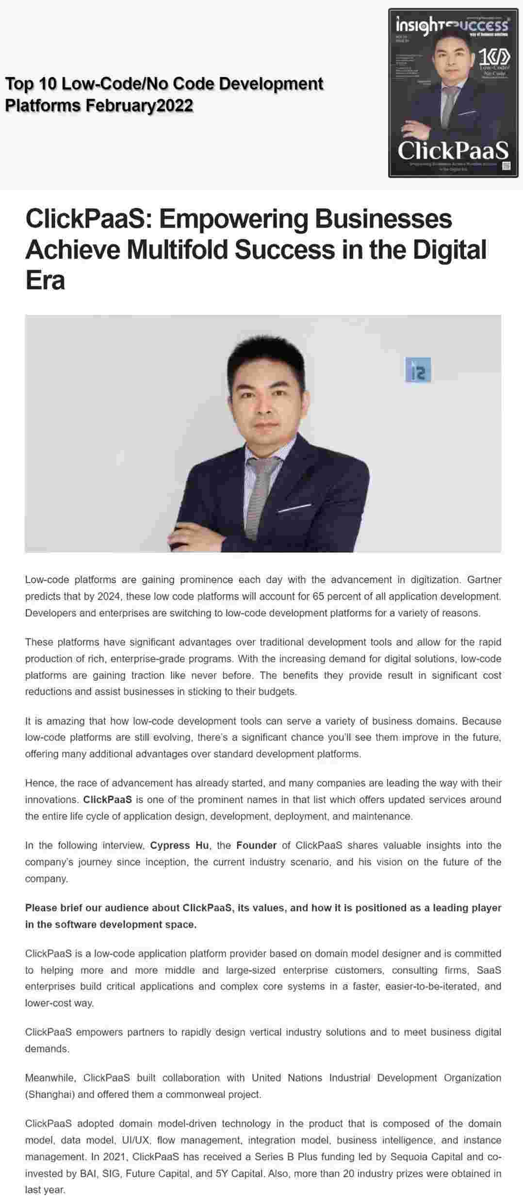 2022年年初,,,,,,,,,,,,NO钱包入选外媒Insights Success低代码/无代码开发平台 Top10,,,,,,,,,创始人、、、、、、CEO胡柏受邀接受专访并荣登封面人物,,,,,,,,,,,,,,他与Insights Success的读者分享了NO钱包成立的初心、、、、、、、、、、发展历程、、、、、、、、当前的行业发展趋势以及他对公司未来的展望。。。。